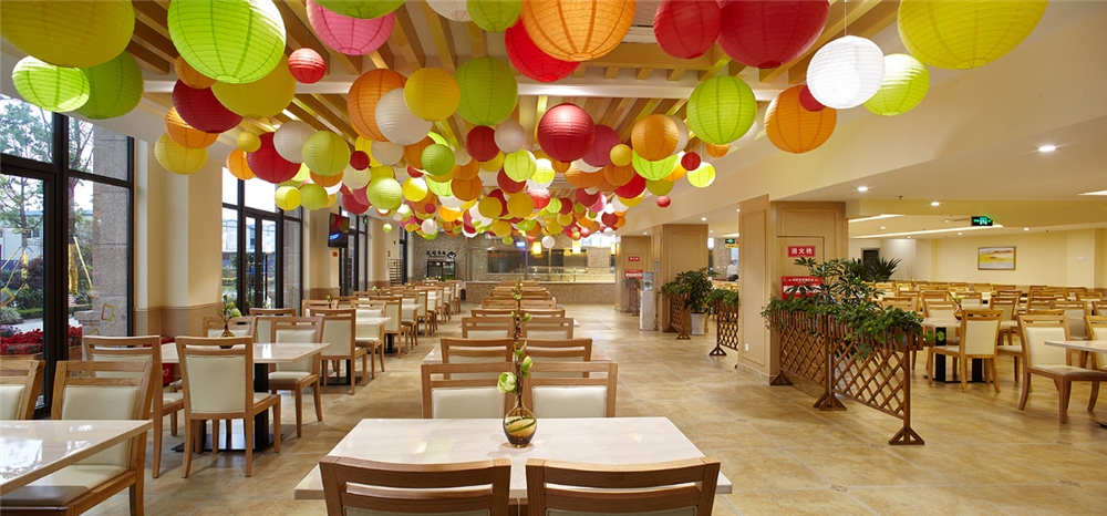 丰富营养膳食 餐厅位于社区一楼,占地面积450平米,可同时容纳近200人用餐。就餐采用半自助形式,提供早、中、晚三餐,并为长者推出高血压、糖尿病专属需求菜品,在保证美味的同时呵护老人的健康。