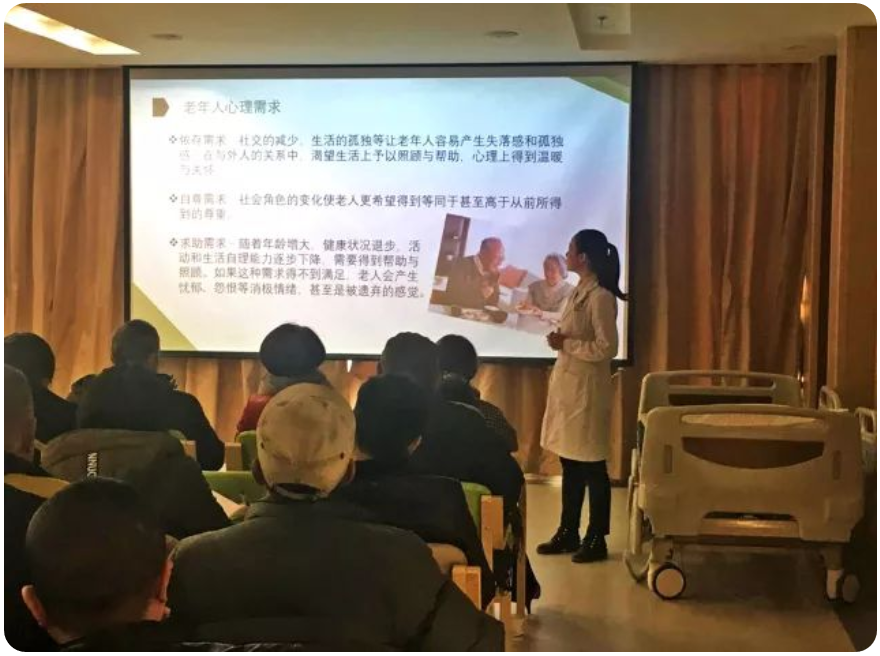 2018年1月19日,亲睦家·老年医院与大地保险——“懂你,才能爱你”失能失智老人居家照护公益培训,在成都市温江区永宁镇八一路北段18号“亲睦家·老年医院”如期举办。针对高龄、失能失智老年人的照护技能和实操培训,为失能老年人家属、家政服务人员、社区居民、志愿者进行护理技能实训,为患者家属提供有关长期照护险申办与居家基础照护知识分享。