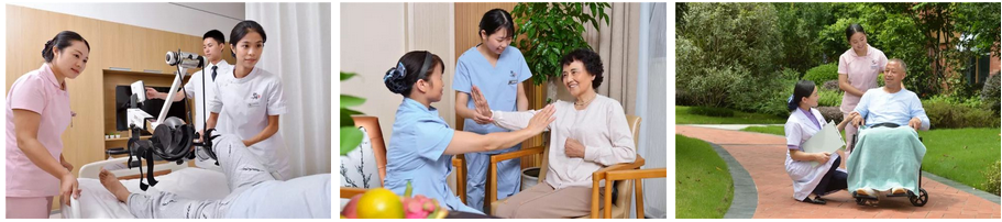 医院针对老年人群,提供“全程-全人-全员”的医疗康复服务,由“医生+护士+心理咨询师+营养师+介护士+康复师”组成专业护理团队,全天候24小时为老人提供家庭式的精致服务,保证患者治疗、康复和疾病管理的科学性和持续性。