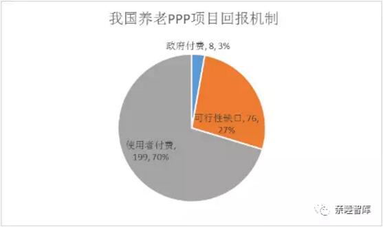 从发起类型看,养老PPP项目主要由政府发起,其比例达到89%,而社会资本发起的养老PPP项目比例仅占11%。从回报机制看,使用者付费占70%,可行性缺口补贴和政府付费分别占27%和3%。